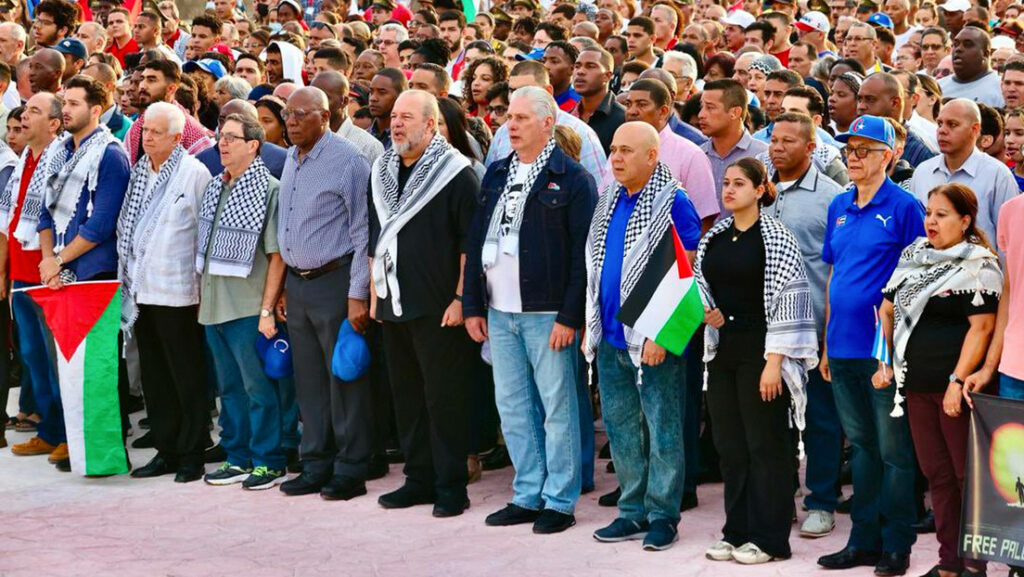 El presidente de Cuba, Miguel Díaz-Canel, ha instado al cese del “genocidio” en la Franja de Gaza, durante su asistencia este sábado a una concentración popular en apoyo al pueblo palestino en la Tribuna Antiimperialista de La Habana. “Duele profundamente Palestina. Indigna la impunidad de los que bombardean sin piedad a su pueblo”, expresó.
