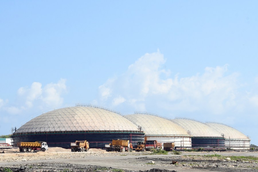 La obra ha requerido un gran esfuerzo técnico por parte del personal local, con el apoyo de constructores chinos que supervisan la instalación de tanques con capacidad de 50.000 metros cúbicos de combustible cada uno.