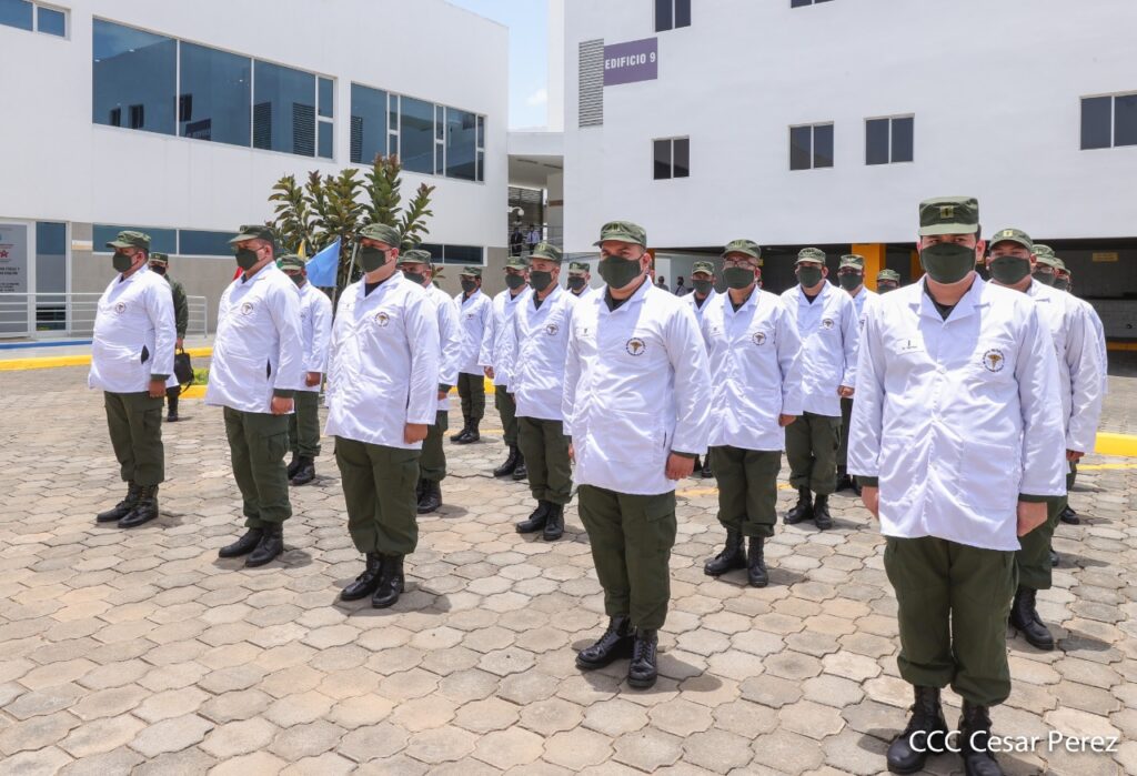 “El 19 de agosto del 79 se recibió de parte de la Cruz Internacional las instalaciones del antiguo Hospital Militar que integró la red de salud del naciente ejército, entonces Ejército Popular Sandinista, constituyéndose así los servicios médicos militares. En estos años, garantizando la atención médica a los miembros del Ejército de Nicaragua y de sus núcleos familiares, se ha venido desarrollando el Cuerpo Médico Militar en estos 46 años, modernizando y fortaleciendo capacidades institucionales, destacando el Hospital Escuela Dr. Alejandro Dávila Bolaños”, rememoró la Compañera Copresidenta Rosario Murillo.