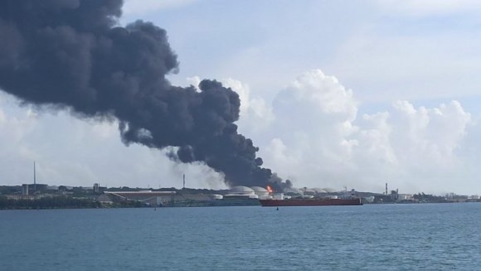 El siniestro se produjo en la noche de este viernes cuando una descarga eléctrica durante una tormenta impactó el tanque 52 de almacenamiento de crudo de la Base de Supertanqueros de Matanzas.