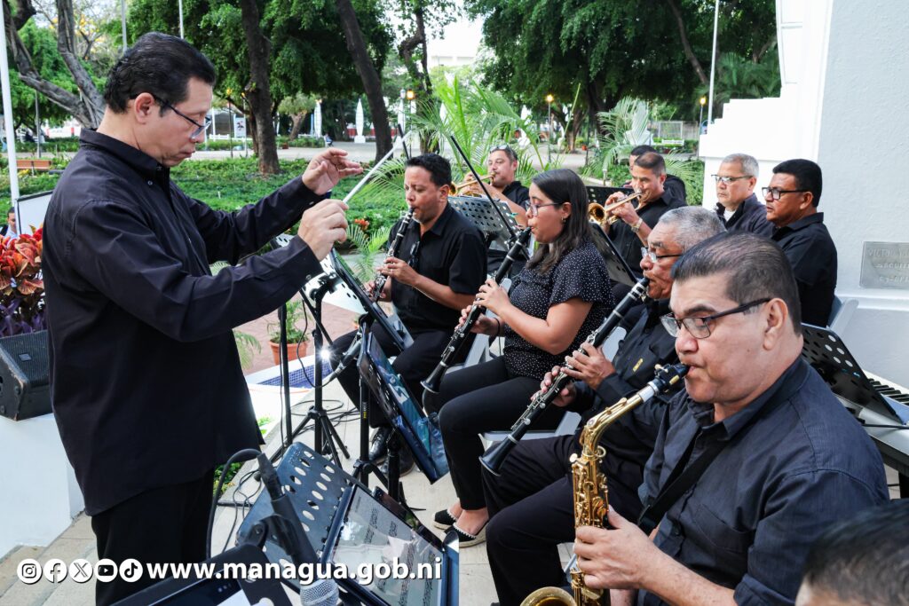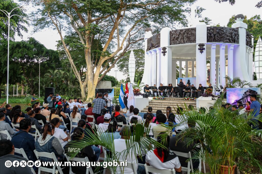 La actividad se efectuó este jueves en La Glorieta del Parque Central, ubicadao en el centro historico de la vieja Managua, y estuvo a cargo de la Orquesta Municipal y diversos grupos folclóricos.