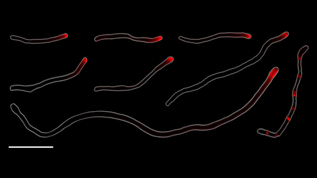 Primero, el filamento se alarga solo en un extremo y crece mucho más que el tamaño habitual de la célula. Lo hace a un ritmo cinco veces más rápido que otras especies de ‘Corynebacterium’ estrechamente relacionadas que viven en la nariz o la piel.