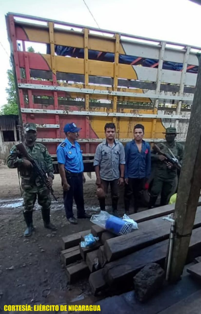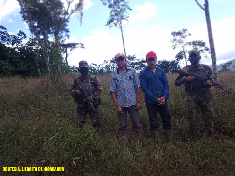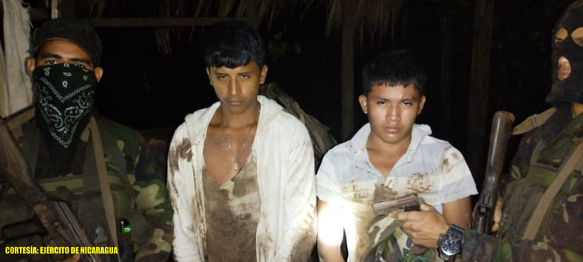 - En el sector de la comarca Sinaí, a 6 kilómetros al suroeste del poblado de La Quezada, retuvieron a los ciudadanos nicaragüenses Esteban Antonio Alvarado y Everth Estrada Gaitán, quienes portaban de manera ilegal 3 armas de fuego de uso civil, sin la documentación establecida, violentando las leyes establecidas en el país.