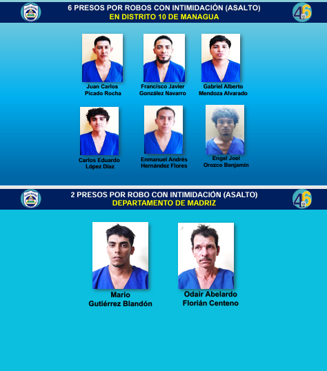 Por otra parte la subcomisionada Obando, precisó que otros seis resultaron aprendidos por robo con intimidación-asalto en los Distritos de Managua.