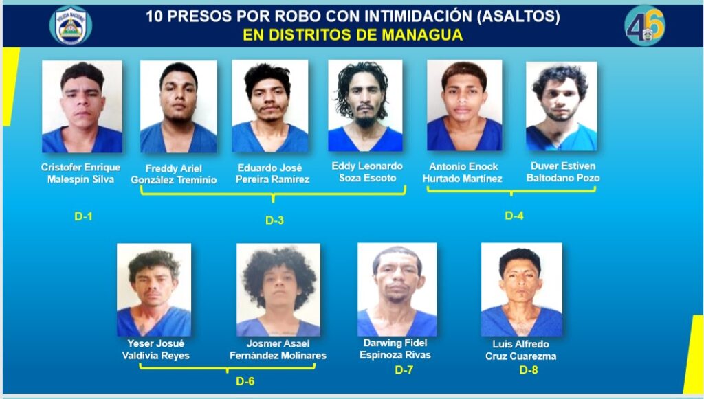 Asimismo, en Jinotega, Carazo, Chinandega y Masaya, se detuvieron a 12 sujetos señalados de cometer asaltos, ocupándoles; cinco revólveres, tres pistolas, cuatro fusiles calibre 22, una escopeta calibre 12 y dos armas artesanales aptas para el disparo.