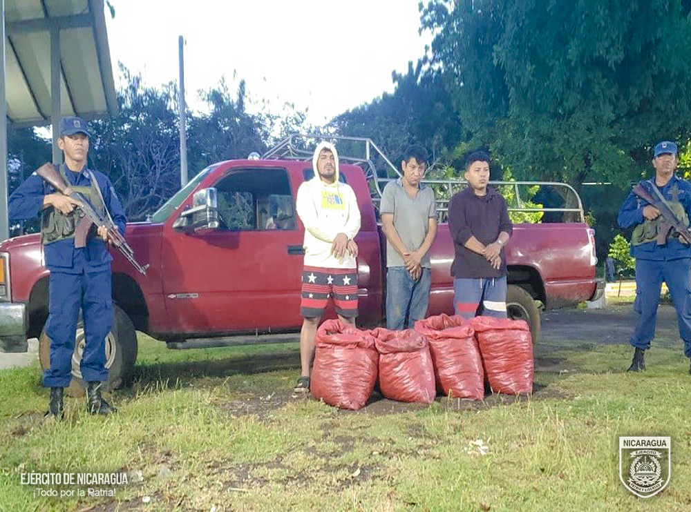 Nota de prensa /. El Ejército de Nicaragua consecuente con el lema de que “Somos el Pueblo mismo uniformado trabajando rn su propio beneficio”, el 16 de octubre de 2024, a través de patrulla de exploración del Distrito Naval Pacífico, en las coordenadas (φ=12°47’00” N; λ=087°23’00” W), retuvo a 3 ciudadanos nicaragüenses, en el sector de Jiquilillo, municipio de El Viejo, Departamento de Chinandega, los que trasladaban 300 libras de camarones, a bordo de 1 camioneta placa CH- 28071, los que habían sido sustraídos de manera ilegal de una camaronera artesanal.