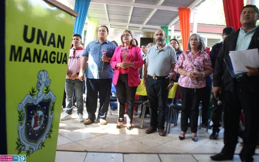 “Su décimo segundo aniversario lo celebramos con esta fiesta académica, con alegría recordando el legado que nos dejó el comandante guerrillero, fundador de nuestro Frente Sandinista, un poeta, un escritor, un hijo de Sandino, leal a sus principios, un hombre firme, un hombre revolucionario que estudió a Sandino, que estudió el Marxismo y que nos ha dejado a nosotros ese legado para que hoy como docentes, como máxima casa de estudios formemos a jóvenes con valores revolucionarios”, manifestó Rodríguez.