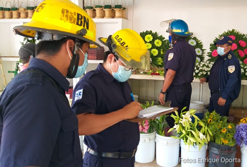 Autoridades de la Dirección General de Bomberos (DGB) realizaron un recorrido por los cementerios Periférico y General, para inspeccionar el tendido eléctrico público y los circuitos en negocios como ventas de comida rápida y otros establecimientos comerciales cercanos.