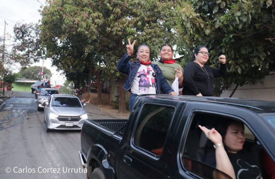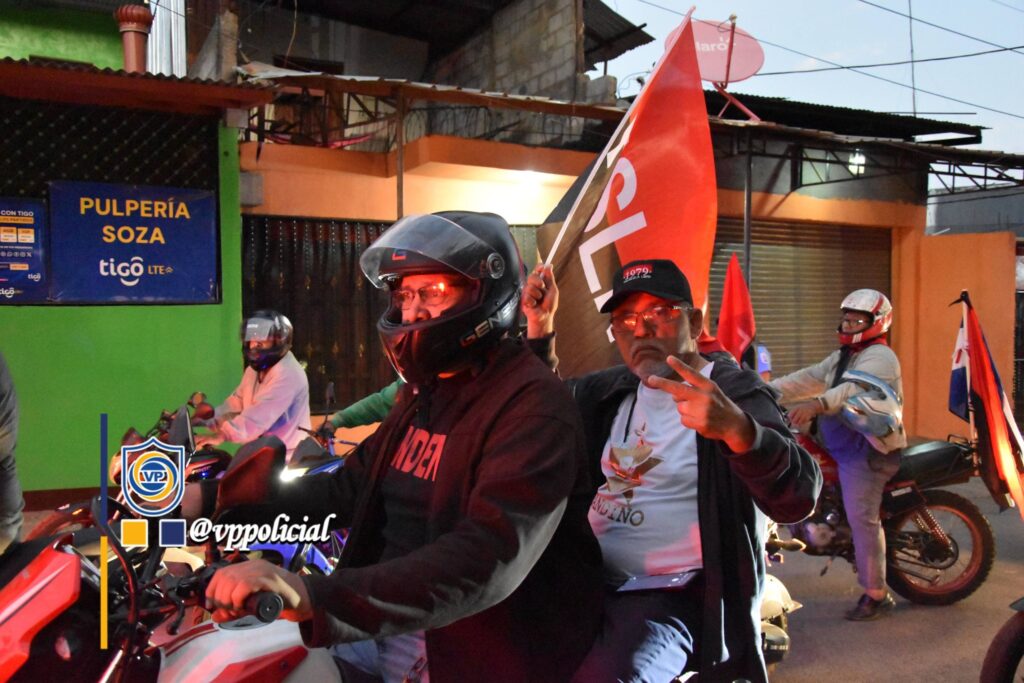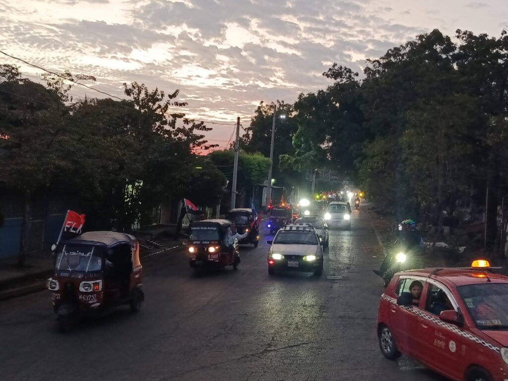 Acompañados de música revolucionaria, militantes del Frente Sandinista de Liberación Nacional recorrieron distintos puntos en motocicletas, camionetas y camiones, ondeando la bandera roja y negra como símbolo de memoria y reconocimiento a la lucha del General Augusto C. Sandino en defensa del pueblo nicaragüense.