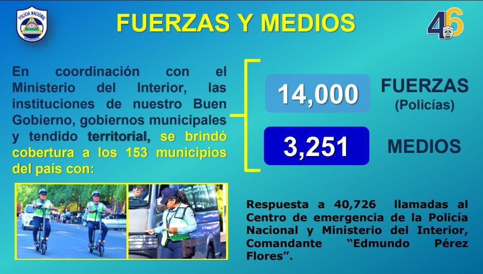 “Este trabajo, este plan, se realizó en coordinación con el Ministerio del Interior. Las instituciones de nuestro Buen Gobierno, gobiernos municipales y tendido territorial. Se brindó cobertura a los 153 municipios del país con 14 mil fuerzas policiales y 3 mil 251 medios de transporte”, subrayó la subcomisionada.