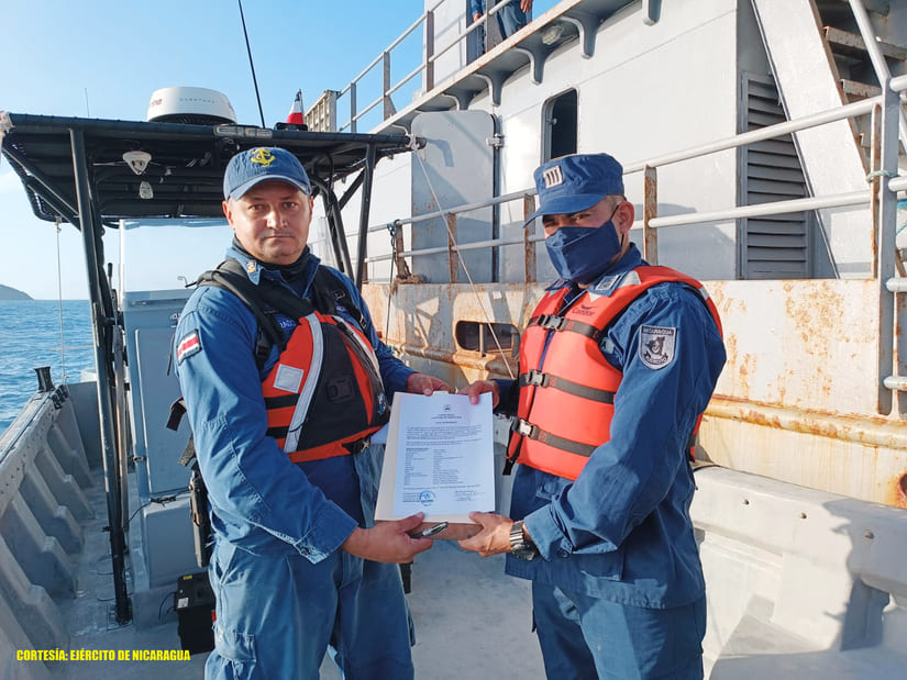 Los ciudadanos: Jason Steven Pérez Arce, Kendal Enrique Zúñiga Arce, Jeudy Pérez Arce, Jocksan Alexis Zúñiga Arce y Clever Julio Gómez Quiroz, fueron entregados junto a la embarcación, a las 4:13 de la tarde en las coordenadas φ:11°02’30N; λ: 085°41’32W, a 12 millas náuticas al suroeste de la bahía de San Juan del Sur, en la línea fronteriza marítima de ambos países, al Teniente Jairo Alvarado Rodríguez del Guardacostas GC 38-11.