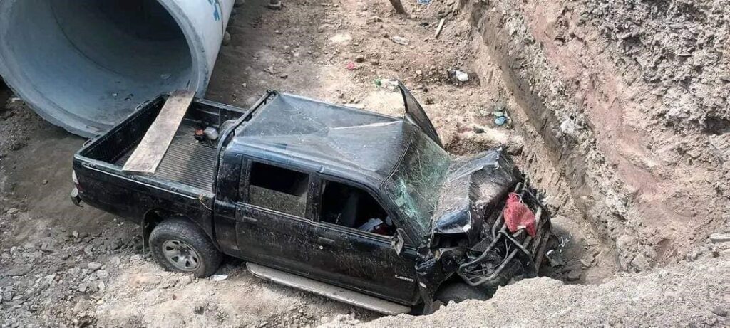 La colisión se dio cuando al parecer el conductor de la camioneta iba a exceso de velocidad y no visibilizó las señalizaciones que había en la vía, debido a las obras que se están realizando, provocando que se fueran en la zanja de la rotonda en construcción.