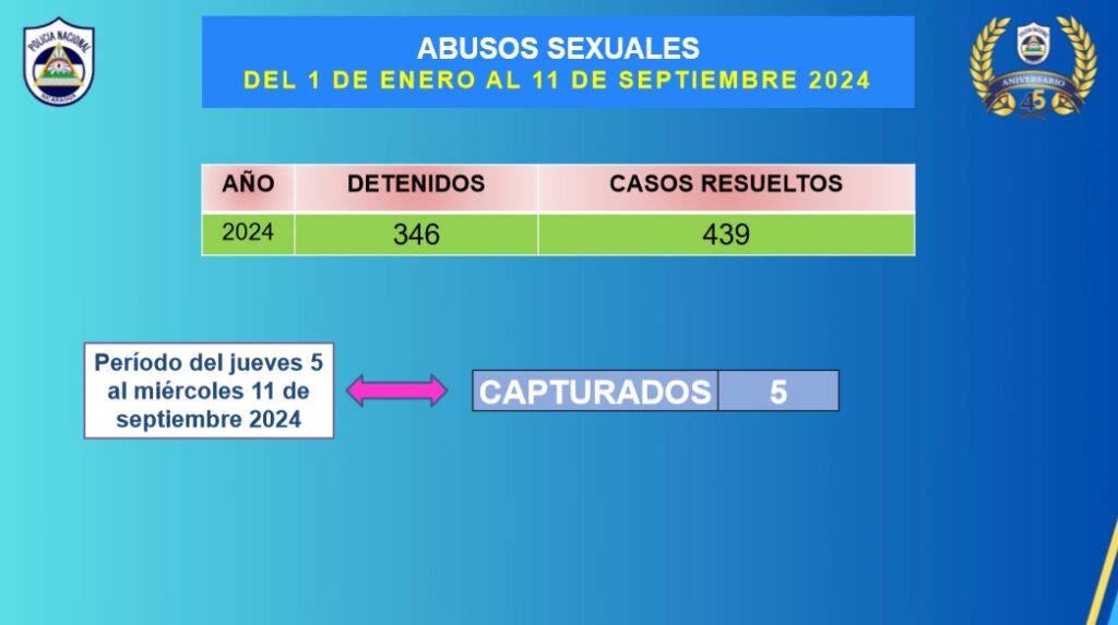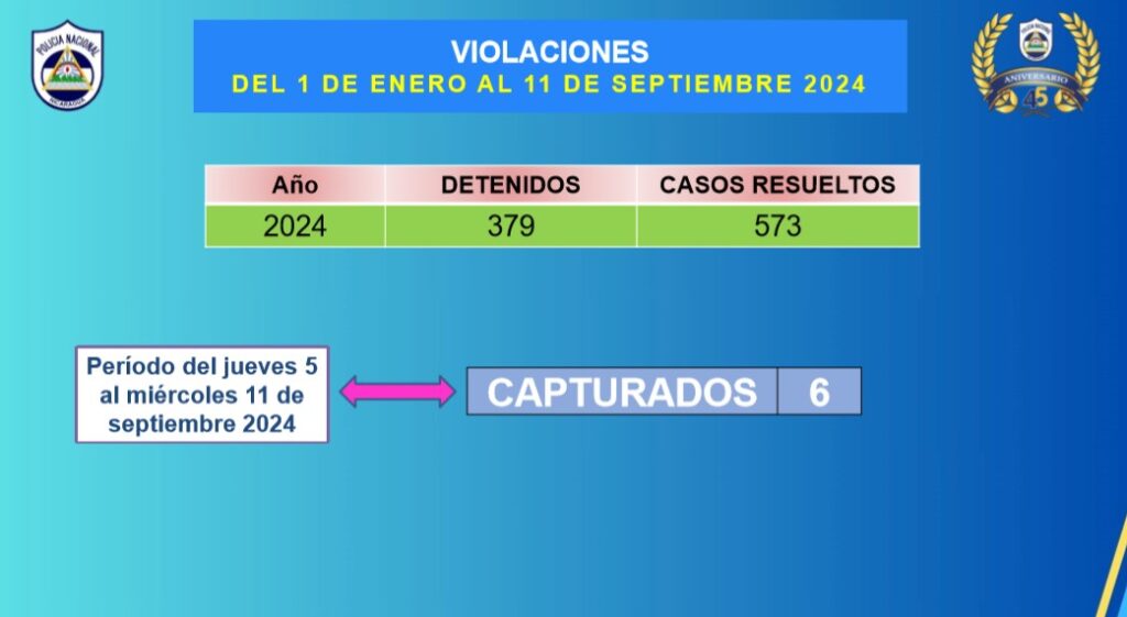 El funcionario dijo que como parte del Plan de Prevención y Seguridad Dirigido a Madres de Familias durante la última semana se recibió 9 denuncias de agresiones y se capturaron a 6 de los señalados.