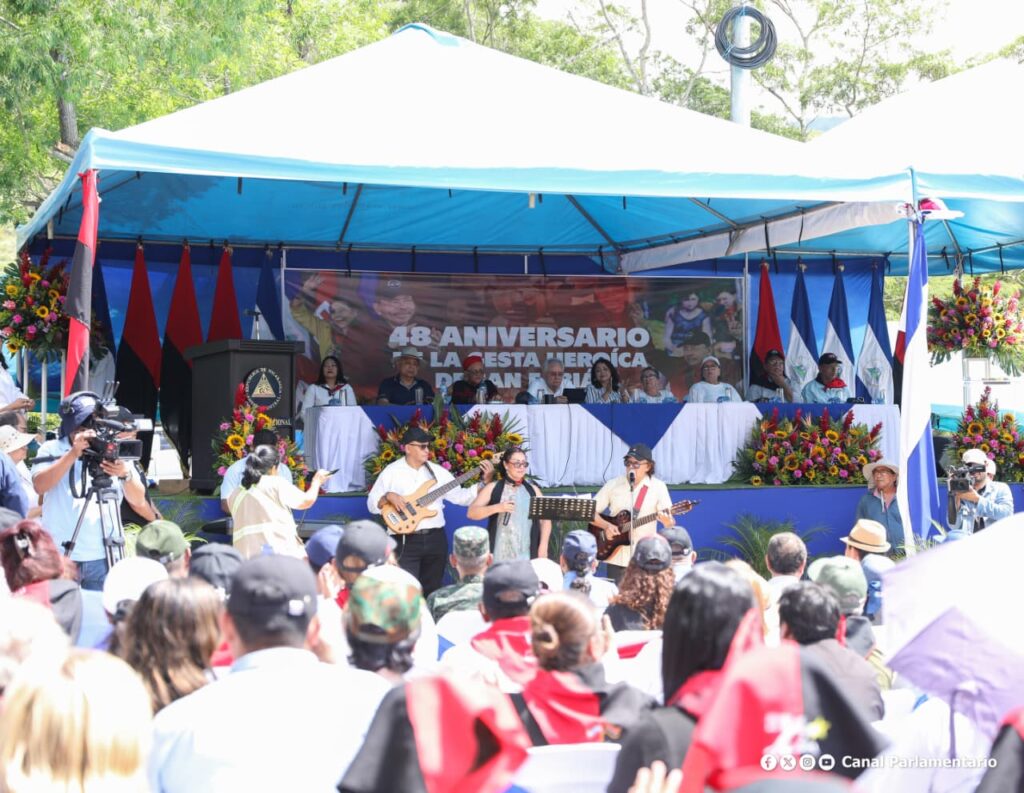 Durante el acto, el representante del órgano legislativo, rememoró como desde la insurrección popular que concluyó con el triunfo de la revolución, luego la guerra de agresión, el bloqueo impuesto por Estados Unidos y el intento de golpe de Estado del 2018, el FSLN ha demostrado que es indestructible.