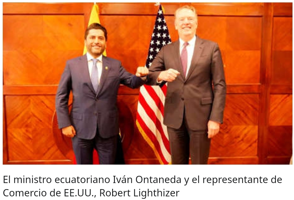 El acuerdo fue firmado por el ministro de Producción de Ecuador, Iván Ontaneda, y el representante de Comercio de EE.UU., Robert Lighthizer, en un acto en el que estuvo Moreno.