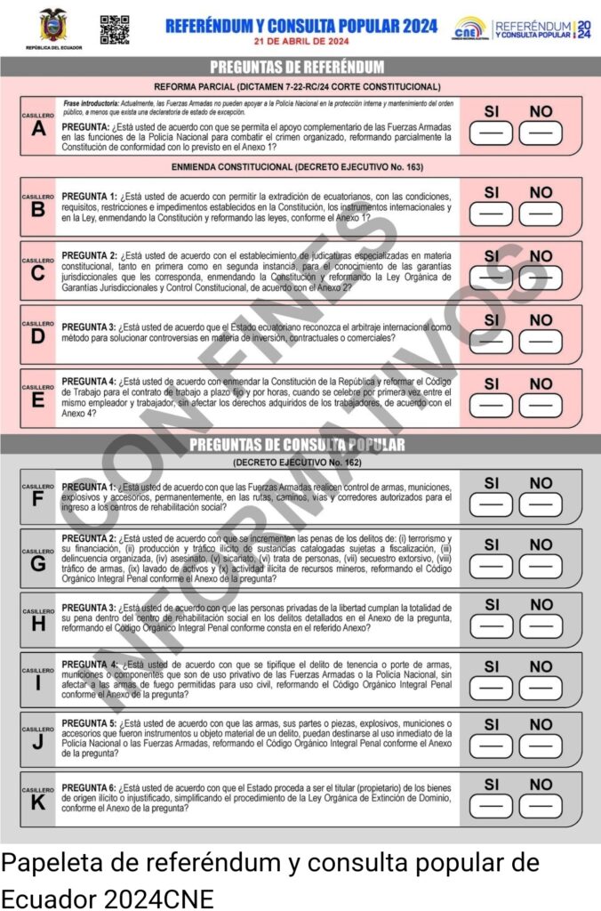 Según los resultados preliminares de la votación, los ecuatorianos respaldaron 3 de las 5 preguntas del referéndum que plantean reformas a la Constitución, y 6 de la consulta popular.