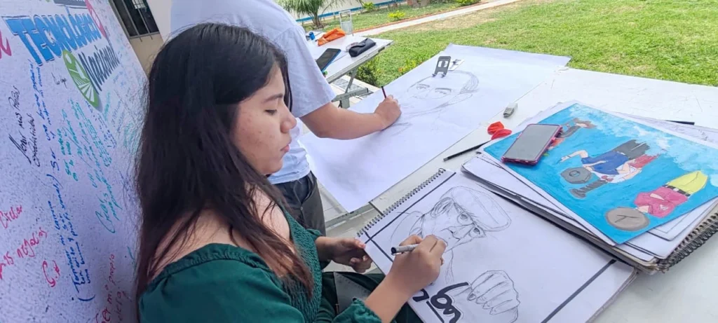 La expresión artística fue el hilo conductor de la jornada y los estudiantes de Dibujo Arquitectónico demostraron sus destrezas técnicas al retratar el rostro y la esencia humana del Comandante, mientras que una cantata y coreografías culturales llenaron el centro de energía, celebrando la vida a través del arte.