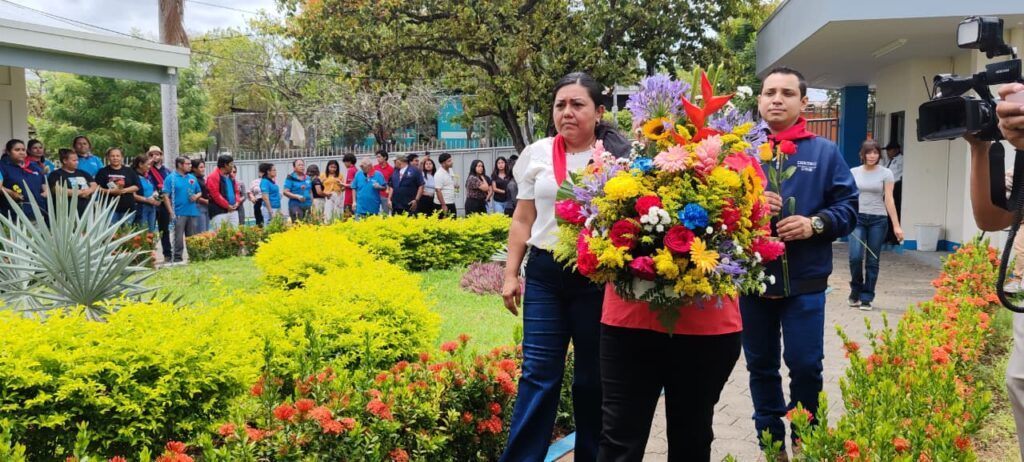 La conmemoración inició con la jornada Una flor para Tomás, donde estudiantes y docentes colocaron ofrendas florales, simbolizando la vigencia de los ideales de firmeza y entrega que el Comandante Borge heredó a la juventud nicaragüense.