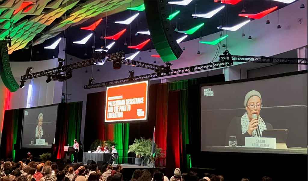 Tlaib, miembro de la Cámara de Representantes y única palestino-estadounidense en el Congreso federal, participó en la Conferencia de los Pueblos por Palestina que concluye este domingo en Detroit, Michigan.