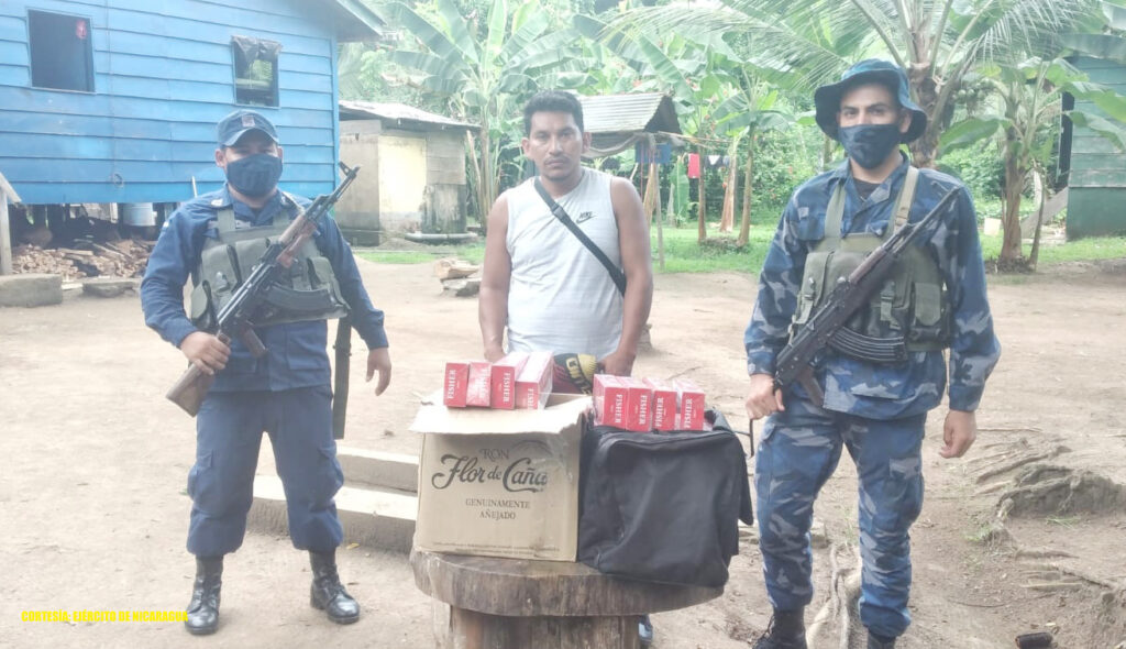 El Ejército de Nicaragua consecuente con el lema de que “Somos el Pueblo mismo uniformado trabajando en su propio beneficio”, a través del Destacamento Naval de Aguas Interiores “Comandante Hilario Sánchez Vázquez”, el 29 de mayo de 2022, durante sondeo rutinario en el Puesto de Control de Embarcaciones de Papaturro, municipio de San Carlos, departamento de Río San Juan, retuvo al ciudadano nicaragüense Juan Francisco Esquivel de 36 años de edad, quien introdujo al país por paso no habilitado, 50 cartones de cigarrillos a bordo de la embarcación de nombre “Miss Dayana”,procedente de la República de Costa Rica, con un valor aproximado de C$ 25,000 (veinticinco mil córdobas).
