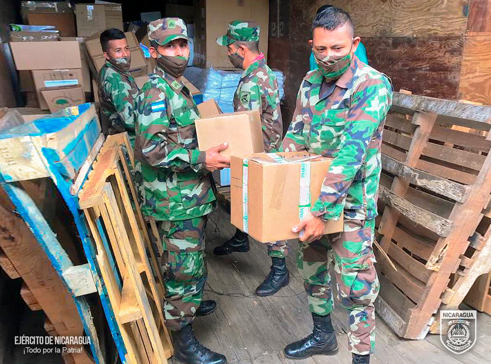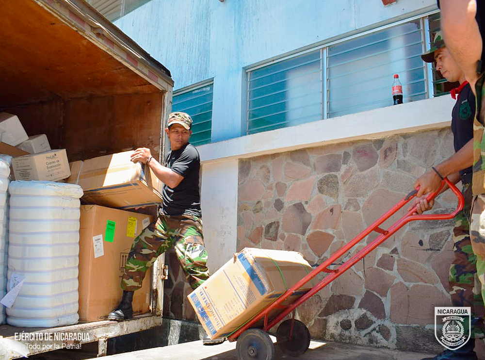 El Ejército de Nicaragua consecuente con el lema de que “Somos el Pueblo mismo uniformado trabajando en su propio beneficio”, el 4 de octubre de 2023, a través del Destacamento Militar Sur, en coordinación con el Sistema Local de Atención Integral en Salud (SILAIS), realizó el cargue de 1,012 cajas conteniendo material de reposición periódica y reactivos de laboratorio, en la bodega del Centro de Salud Adolfo Largaespada, ubicada en la comunidad El Laurel Galán, posteriormente se trasladó y descargó en el Hospital “Dr. Luis Felipe Moncada”, del municipio de San Carlos, departamento de Río San Juan.