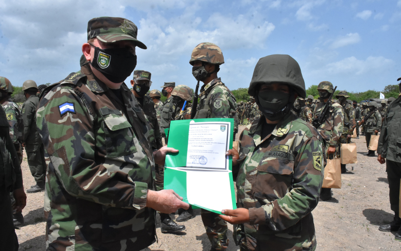 El Ejército de Nicaragua consecuente con el lema de que “Somos el Pueblo mismo uniformado trabajando en su propio beneficio”, durante el fin de semana, en el Polígono Nacional de Maniobras “General de División Francisco Estrada”, ubicado en la comarca El Papalonal, municipio de La Paz Centro, departamento de León, el Comandante en Jefe del Ejército de Nicaragua, General de Ejército Julio César Avilés Castillo, acompañado por el Jefe del Estado Mayor General, Mayor General Bayardo Ramón Rodríguez Ruiz y el Inspector General, Mayor General Marvin Elías Corrales Rodríguez, realizaron la clausura de los cuatro ciclos de preparación combativa del año 2021, dedicado a nuestros héroes nacionales.