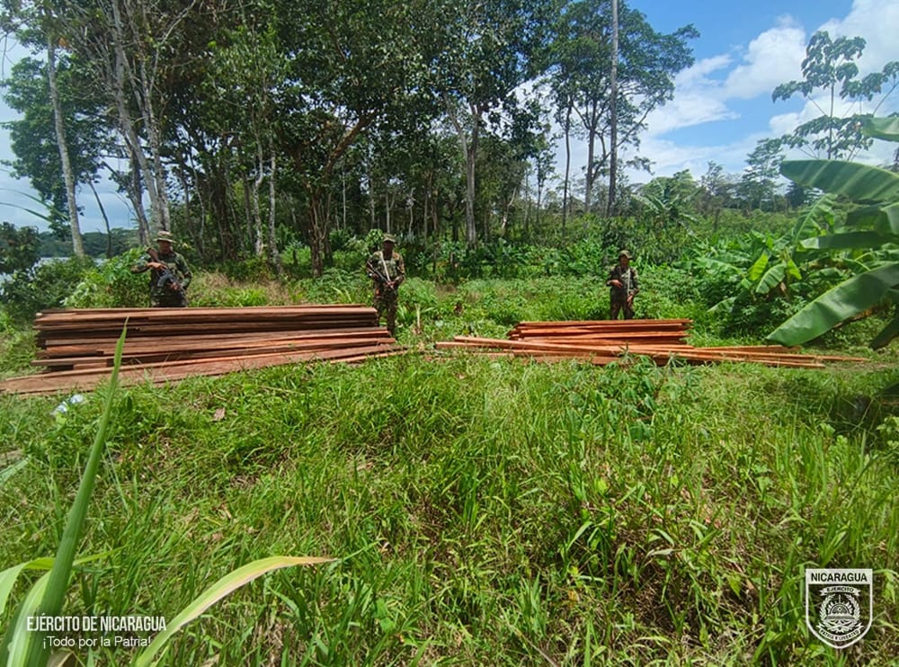 Diversos operativos del Destacamento Militar Sur, en el municipio de El Castillo, departamento de Río San Juan, dejó la detención de cinco personas, la incautación de madera talada ilegalmente, radios de comunicación, un dron y otros medios que pretendían ser empleados en labores de minería ilegal en la Reserva Biológica Indio Maíz.