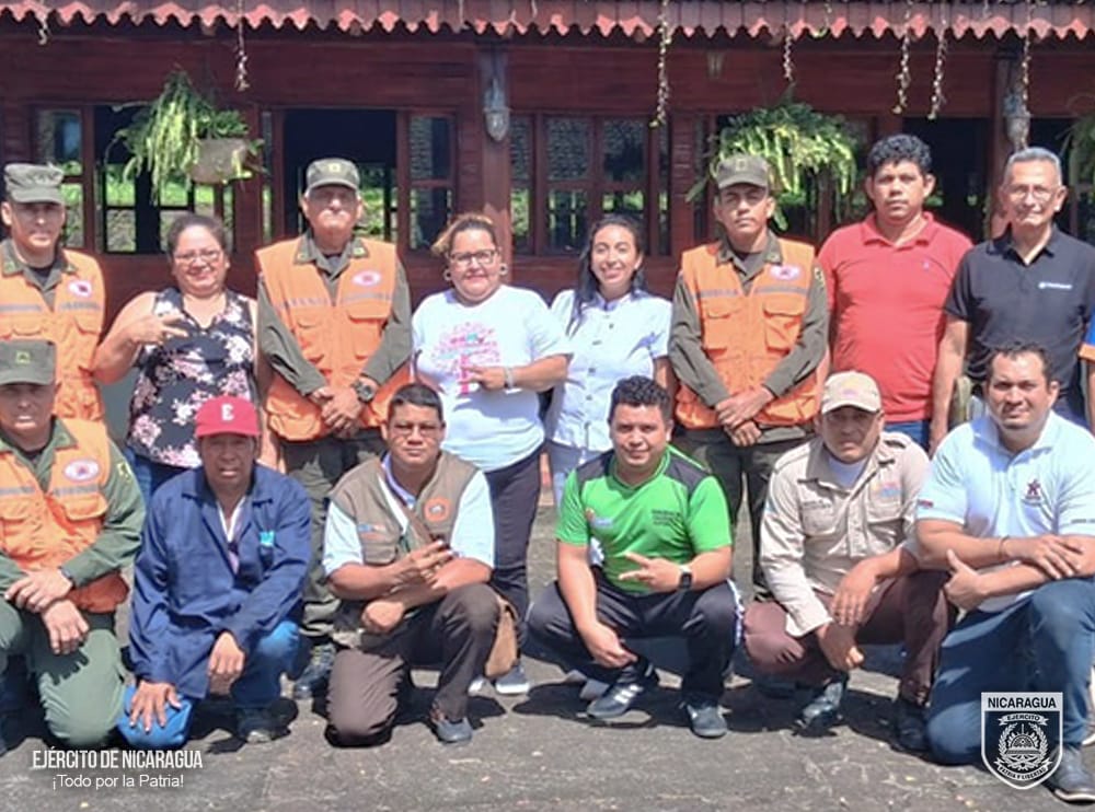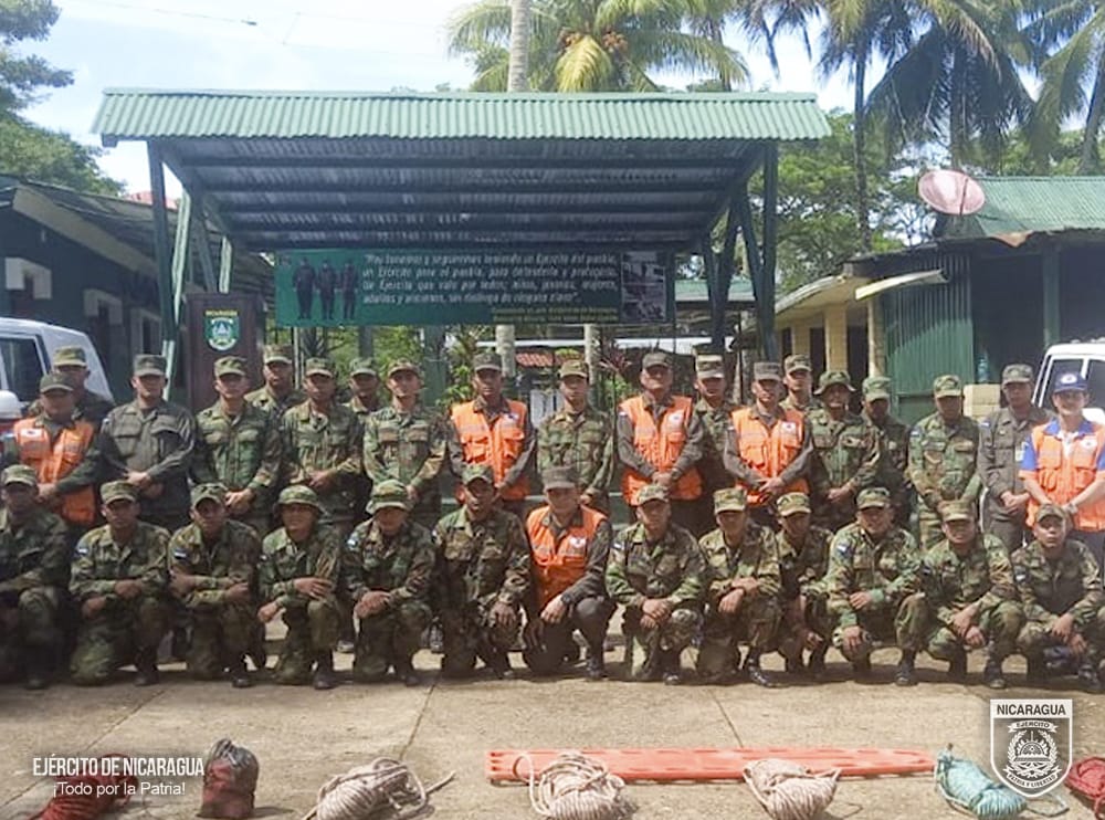 Autoridades del Ejército de Nicaragua brindaron capacitaciones en primeros auxilios, control de incendios, búsqueda y rescate, entre otros, a cinco brigadas de respuesta ante emergencias en el departamento de Río San Juan.