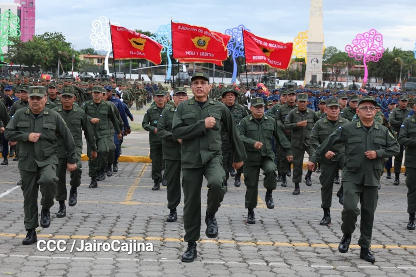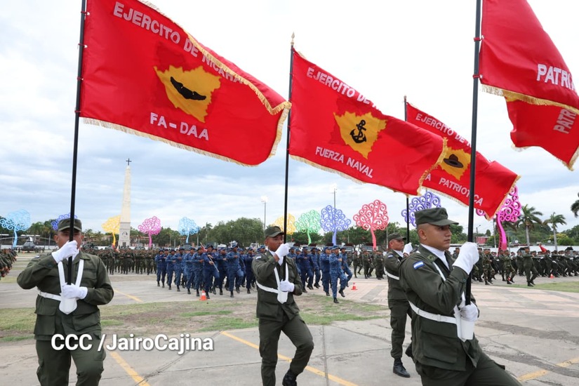 “Son 46 aniversario dando todo por la patria, 46 aniversario de entrega, de sudor, de sacrificio, pensando siempre en lo mejor para todos los nicaragüenses. El día 2 haremos el acto central y estarán con nosotros los Copresidentes y Jefatura Suprema del Ejército de Nicaragua, Comandante Daniel Ortega y la Compañera Rosario Murillo”, expresó el Jefe del Ejército de Nicaragua, general Julio César Avilés Castillo.