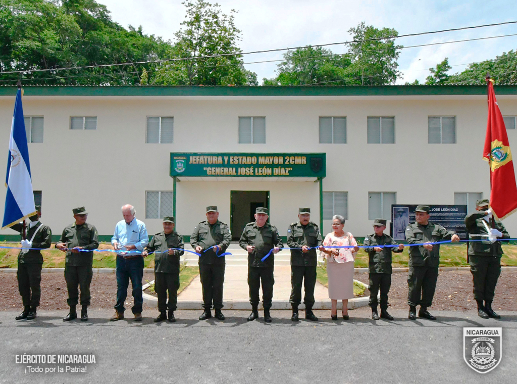 El Comandante en Jefe del Ejército de Nicaragua en su intervención, destacó: “hoy que estamos realizando este acto de inauguración de las obras de infraestructuras en el marco de la jornada por el 44 aniversario de constitución del Ejército de Nicaragua, obras desarrolladas como parte de nuestro plan de modernización y desarrollo, el plan Patria y Libertad, con el objetivo de mejorar e incrementar la infraestructura en función de asegurar las mejores condiciones de vida y de trabajo del personal que integran esta importante unidad militar, estas obras que estamos inaugurando el día de hoy, tienen alrededor de cinco mil metros cuadrados y corresponde a la edificación de un edificio de dos plantas para el funcionamiento de la Jefatura y Estado Mayor… entregamos estas instalaciones totalmente equipadas con los medios e inmobiliarios necesarios para el mejor desempeño de los deberes militares… con estas instalaciones ustedes hermanos de armas están en mejores condiciones para continuar cumpliendo con éxito las misiones y tareas…”.