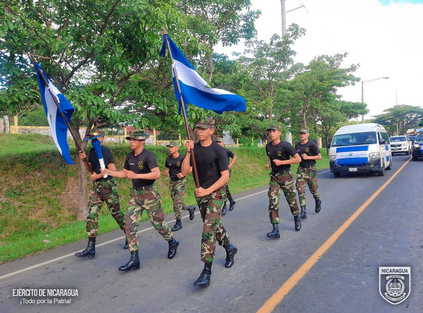 (Comunicado).– El Ejército de Nicaragua en cumplimiento a la Jornada Conmemorativa “Fiestas Patrias”, del 10 al 13 de septiembre de 2023, a través del 1, 4 y 6 Comando Militar Regional, el Centro Superior de Estudios Militares “General de División José Dolores Estrada Vado”, la Escuela Básico de Nacional de Adiestramiento Infantería “Soldado Ramón Montoya” y la Fuerza Aérea, en coordinación con el Ministerio de Educación (MINED), participaron en la recepción, traslado y entrega de la Antorcha de la Libertad Centroamericana, misma que ingresó al territorio nacional por el Puesto de Control Fronterizo de Las Manos, departamento de Nueva Segovia y se entregó en la frontera sur de Peñas Blancas, municipio de Cárdenas, departamento de Rivas.