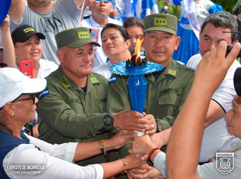 (Comunicado).– El Ejército de Nicaragua en cumplimiento a la Jornada Conmemorativa “Fiestas Patrias”, del 10 al 13 de septiembre de 2023, a través del 1, 4 y 6 Comando Militar Regional, el Centro Superior de Estudios Militares “General de División José Dolores Estrada Vado”, la Escuela Básico de Nacional de Adiestramiento Infantería “Soldado Ramón Montoya” y la Fuerza Aérea, en coordinación con el Ministerio de Educación (MINED), participaron en la recepción, traslado y entrega de la Antorcha de la Libertad Centroamericana, misma que ingresó al territorio nacional por el Puesto de Control Fronterizo de Las Manos, departamento de Nueva Segovia y se entregó en la frontera sur de Peñas Blancas, municipio de Cárdenas, departamento de Rivas.