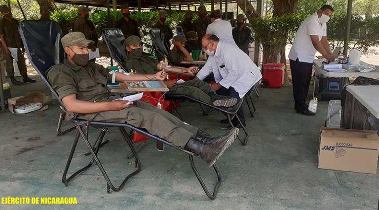El Ejército de Nicaragua consecuente con el lema de que “Somos el Pueblo mismo uniformado trabajando en su propio beneficio”, a través de la Brigada de Infantería Mecanizada «General Augusto C. Sandino» y el 5 Comando Militar Regional, el 25 y 26 de mayo de 2021, en coordinación con el Banco Nacional de Sangre, participaron en jornada de donación voluntaria de sangre.