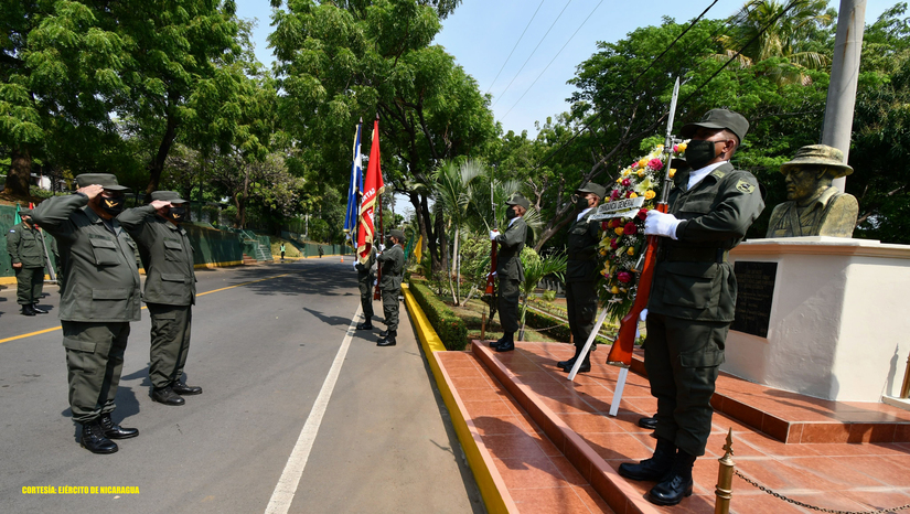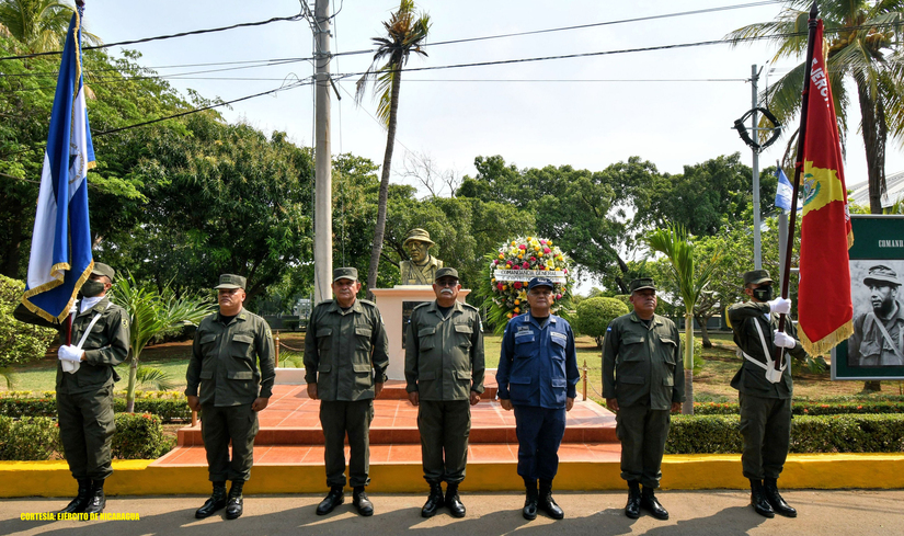 (Comunicado).- El Ejército de Nicaragua en las instalaciones del Complejo militar N° 1, “Comandante Germán Pomares Ordóñez’’, realizó ceremonia de colocación de ofrenda floral en conmemoración del 44 Aniversario del paso a la inmortalidad del Héroe Nacional “Comandante Germán Pomares Ordóñez”, ante el busto erigido en su honor, en reconocimiento a su legado histórico y patriótico.
