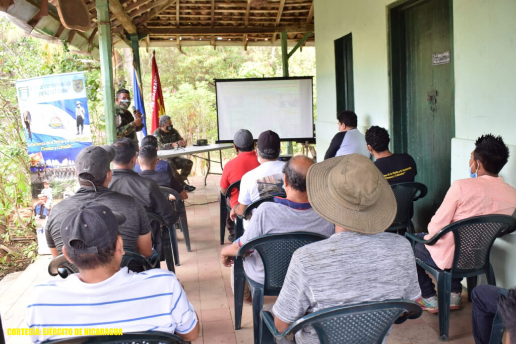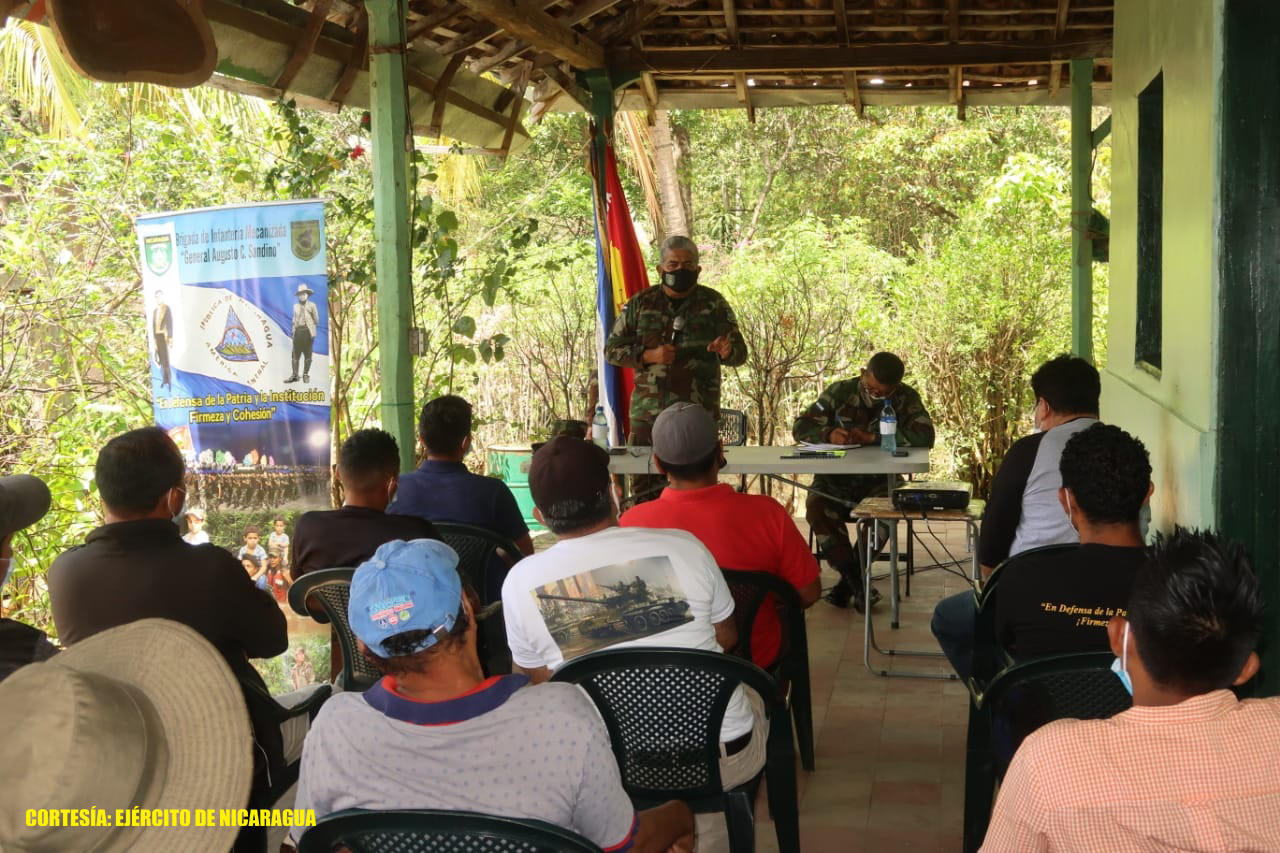 Durante la reunión, el General de Brigada Duarte Orozco, transmitió el saludo del Comandante en Jefe del Ejército de Nicaragua, General de Ejército Julio César Avilés Castillo, manifestándoles que seguiremos trabajando con las autoridades municipales y territoriales para continuar fortaleciendo la seguridad en el campo, de acuerdo al compromiso asumido durante el cierre de la cosecha cafetalera, ciclo productivo 2020-2021.