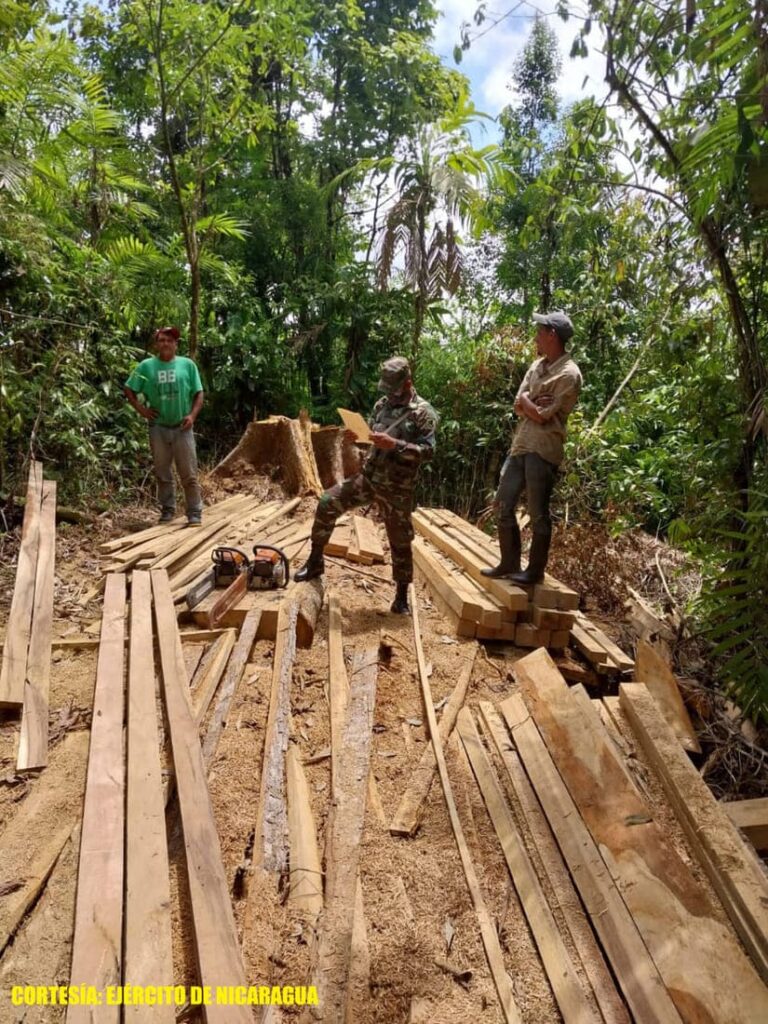 1. En la comunidad San Pedro, se retuvo a los ciudadanos nicaragüenses Juan Antonio Sánchez Casco de 45 años de edad y Junior Alexander Hernández Vallecillo de 25 años de edad, quienes trasladaban de manera ilegal 876.5 pies tablar de madera de la especie roble, violentando las leyes establecidas en el país.