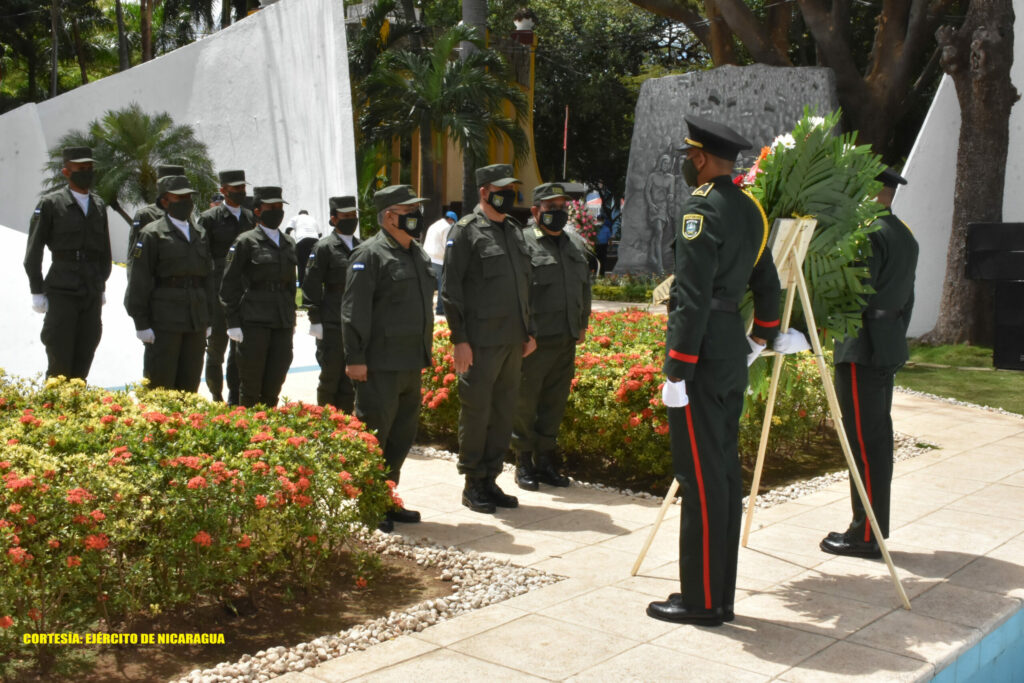 El Ejército de Nicaragua consecuente con el lema de que “Somos el Pueblo mismo uniformado trabajando en su propio beneficio”, el 21 de febrero de 2021, en la Plaza de la Revolución, departamento de Managua, el Ejército de Nicaragua participó en ceremonia de colocación de ofrendas florales ante el monumento del General Augusto C. Sandino, ubicado en el Mausoleo de los Héroes de la Plaza de la Revolución, en Conmemoración del 87 Aniversario del Paso a la Inmortalidad del “Héroe Nacional, General de Hombres Libres Augusto C. Sandino”.