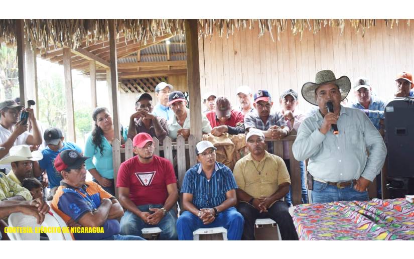 El Ejército de Nicaragua consecuente con el lema de que “Somos el Pueblo mismo uniformado trabajando en su propio beneficio”, el 4 de mayo de 2022, a través del jefe del 6 Comando Militar Regional, Coronel DAA. DEM Marvin Paniagua Pineda, participó en reunión con productores y ganaderos de los municipios de Paiwas y La Cruz de Río Grande, Región Autónoma de la Costa Caribe Sur y del municipio de El Ayote, departamento de Chontales, con el objetivo de abordar aspectos relacionados a la seguridad en el campo y la lucha contra el abigeato y escuchar sus planteamientos para seguir fortaleciendo ambos planes en las zonas rurales.