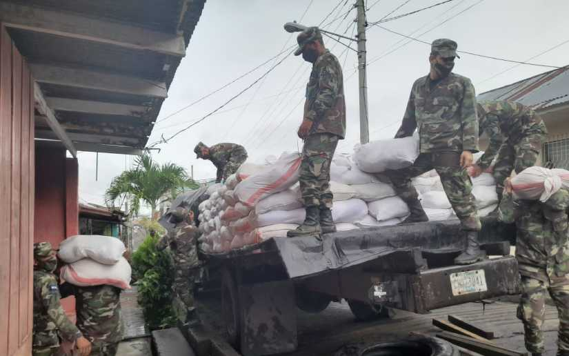 El Estado Mayor del Destacamento Militar Sur, en coordinación con la alcaldía del municipio de San Carlos, departamento de Río San Juan, realizó el descargue de alimentos en el auditorio Gabriel Aguirre Marín de la secretaría municipal, con el fin de abastecer a las familias en emergencia social.