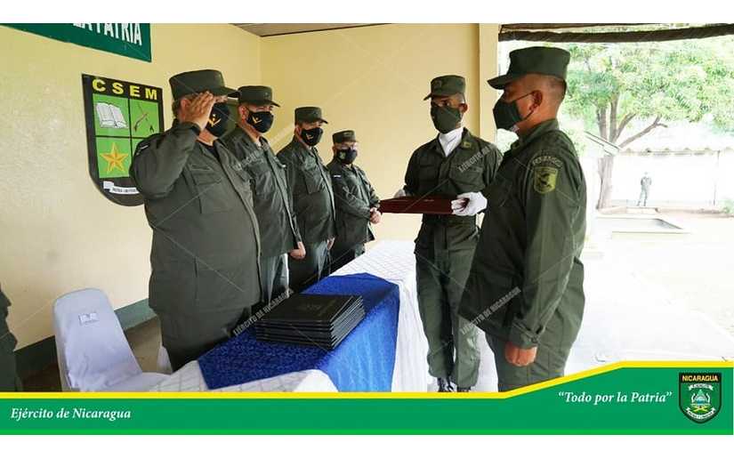 El Ejército de Nicaragua consecuente con el lema de que “Somos el Pueblo mismo uniformado trabajando en su propio beneficio”, el 24 de mayo de 2022, en el Anfiteatro del Centro Superior de Estudios Militares “General de División José Dolores Estrada Vado” (CSEM), realizó acto de graduación de Cursos de Perfeccionamiento de Oficiales Especialista, en Mando Táctico de Tropas Generales, Navales, Artillería Terrestre y Antiaérea, Logística, Aseguramiento Técnico del Mando e Ingeniería Militar, en honor al “Héroe Nacional”, Poeta Rigoberto López Pérez, como justo reconocimiento a su legado histórico y patriótico.