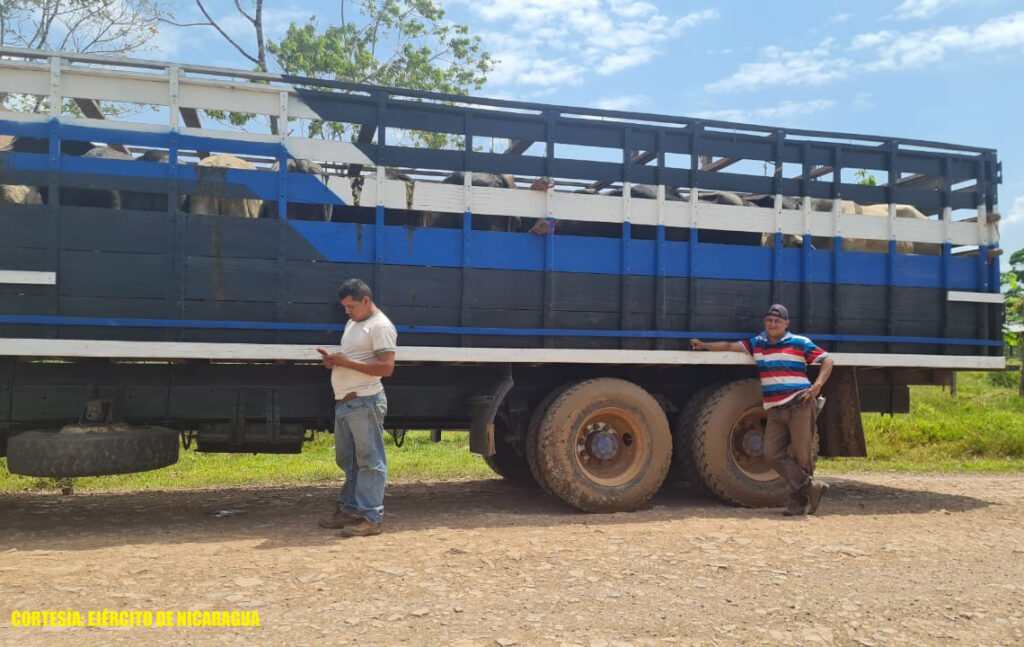 El Ejército de Nicaragua consecuente con el lema de que “Somos el Pueblo mismo uniformado trabajando en su propio beneficio”, a través del 5 Comando Militar Regional, el 26 de abril de 2021, efectivos militares durante servicios operativos ocuparon 2 camiones con 45 semovientes, trasladados por 4 personas vinculadas al abigeato. Además, 5 que eran arreadas de manera ilegal por 6 abigeos, en los municipios de El Ayote y El Tortuguero, Región Autónoma de la Costa Caribe Sur.