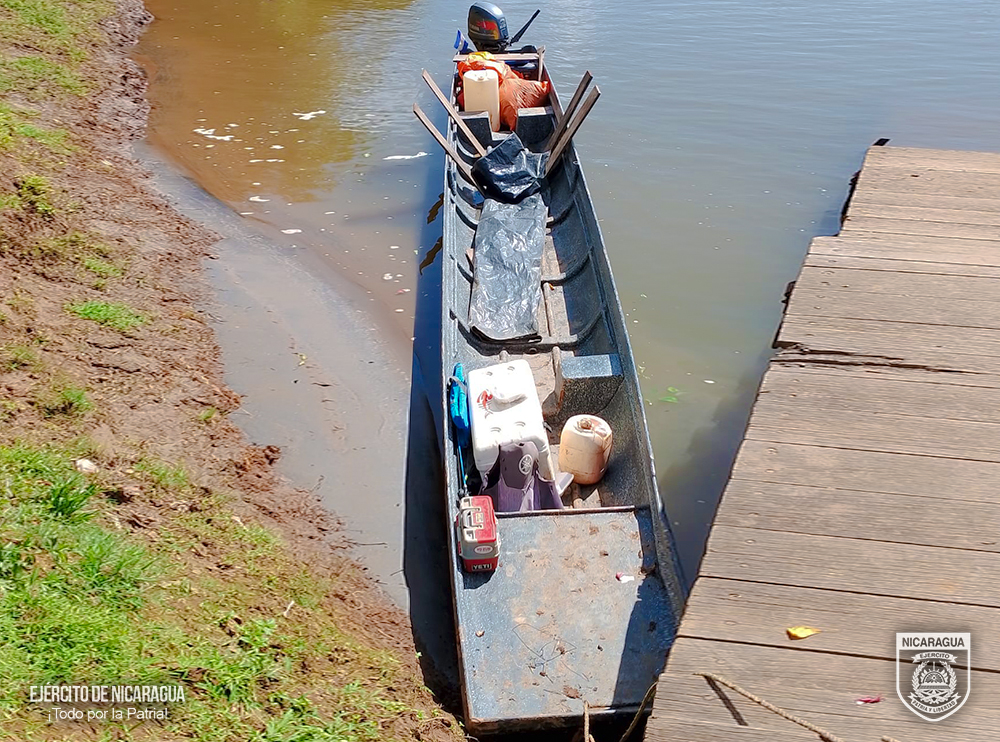 En otra acción, cuando se realizaba un sondeo rutinario a las embarcaciones en el muelle de El Castillo, se retuvo una embarcación propiedad del nicaragüense Marvin Obando Andino,a quien se le ocupó mercadería y materiales para minería ilegal.