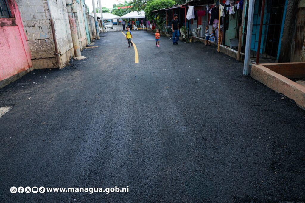 Los habitantes del Barrio Hilario Sánchez celebraron este jueves, que la municipalidad de Managua haya pavimentado el 100% de sus calles, terminando con ello, las anegaciones cuando llovía y mejorando la seguridad vial y peatonal, describió, la Secretaria del Consejo Municipal, Jenifer Porras.
