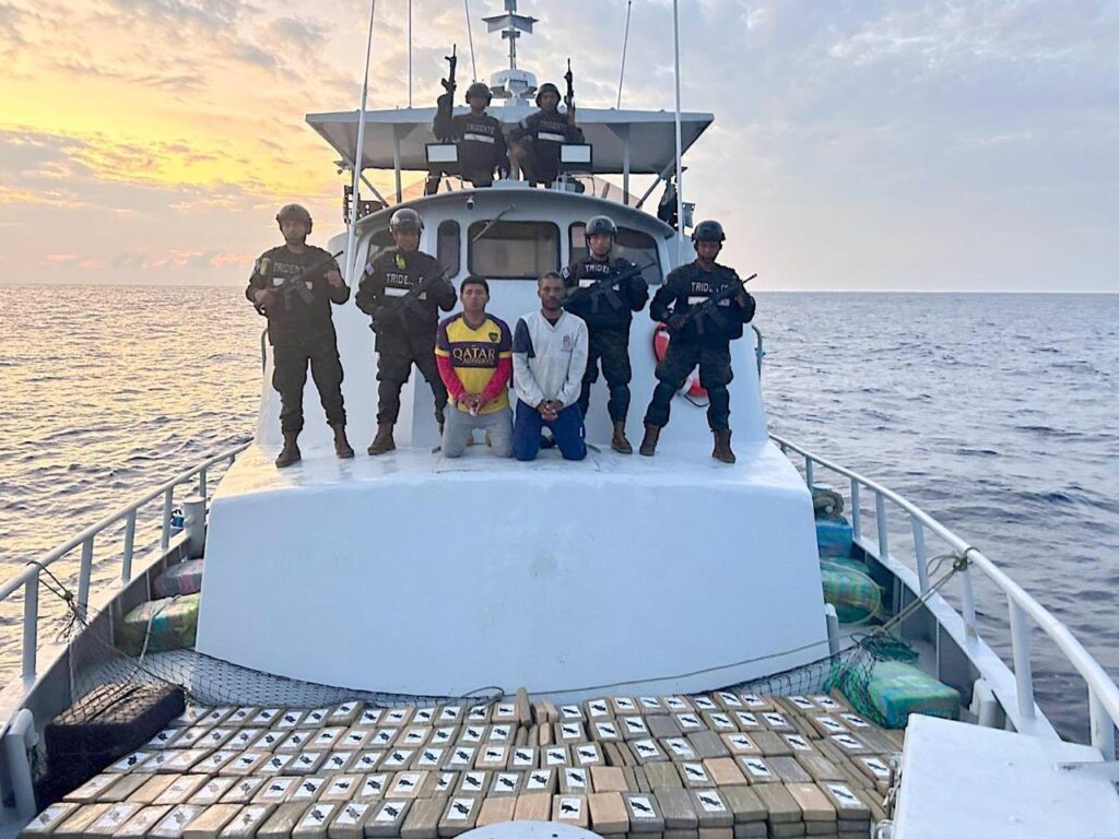 Otra acción fue ejecutada contra una tercera nave conducida por dos ecuatorianos los cuales transportaban 599 kilos de cocaína, valorados en 14.9 millones de dólares.