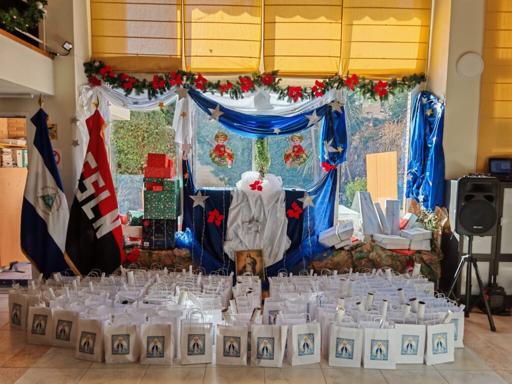 Delante de un colorido altar que refleja la creatividad y la devoción hacia una de las tradiciones más populares de Nicaragua, se congregaron para rezar y cantar a la Virgen María, hermanos nicaragüenses residentes en España.