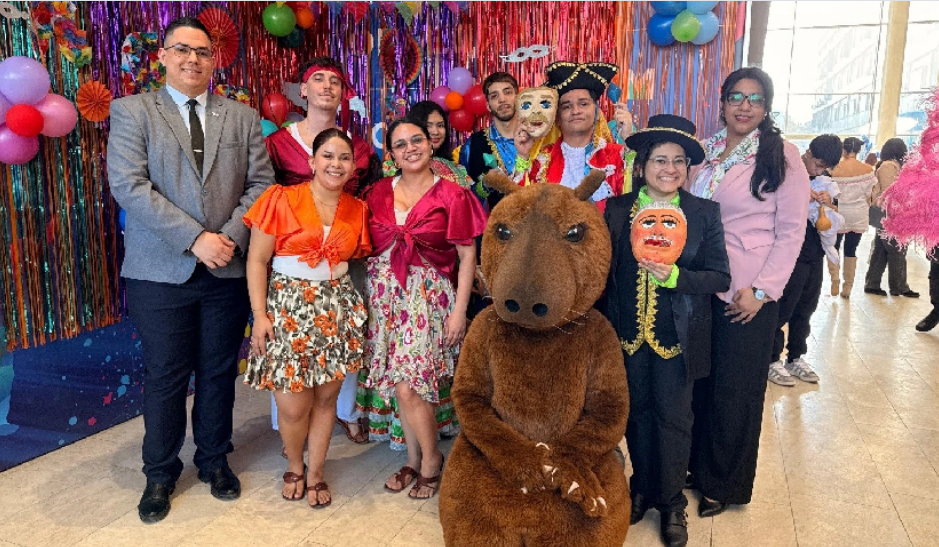 En el intercambio cultural, los estudiantes nicaragüenses realizaron un desfile de personajes icónicos como el de El Viejo y la Vieja, El Güegüense o Macho Ratón y los bailes de la Costa Caribe.
