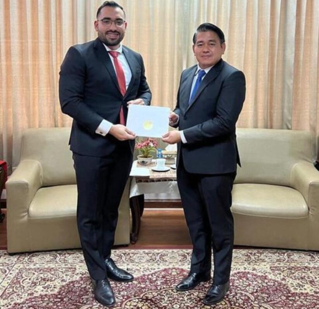 Mario José Armengol Campos, presentó Copia de Estilo de la Carta Credencial a Outtama Sithiphong, Director del Departamento de Protocolo de Estado, que lo acreditan como Embajador Extraordinario y Plenipotenciario de Nicaragua ante la República Democrática y Popular de Laos.