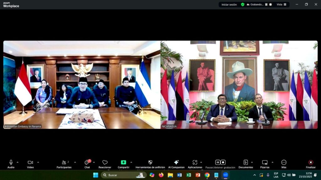 El nuevo Embajador de Indonesia ante Nicaragua y concurrente desde Panamá, Hendra Halim, de forma virtual presentó este jueves, ante la Cancillería nicaragüense sus Copias de Estilo.