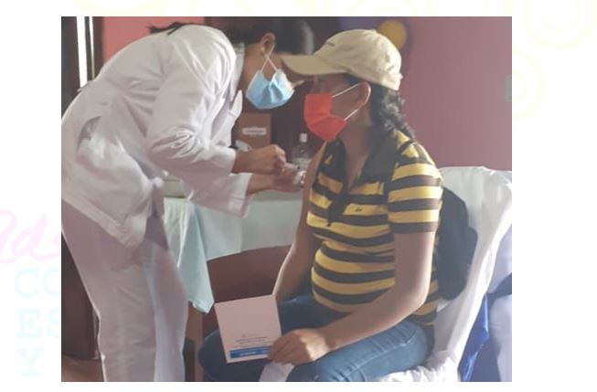 Yareyli Xiomara García López, 18 años, embarazada de la comunidad El Bambú, Municipio El Tortuguero, RACCS, viajó más de una hora en caballo para recibir su primera dosis de la vacuna contra el Covid-19, para proteger su vida y la de su bebé.