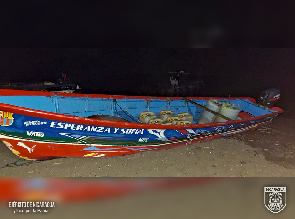 El Ejército de Nicaragua retuvo a tres personas quienes a bordo de una embarcación de bandera nicaragüense de nombre Esperanza y Sofía, ingresaron combustible de manera ilegal, procedente de Honduras, violentando las leyes establecidas en el país.